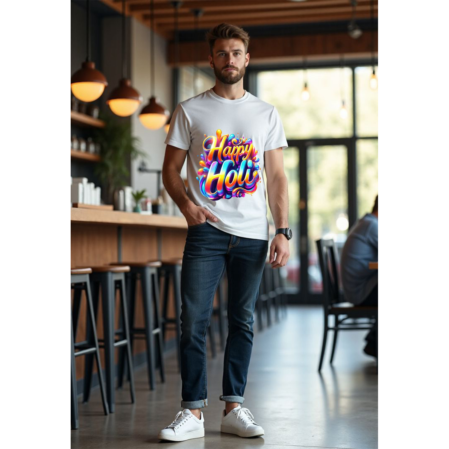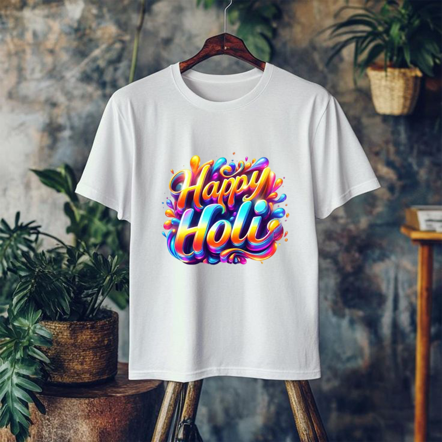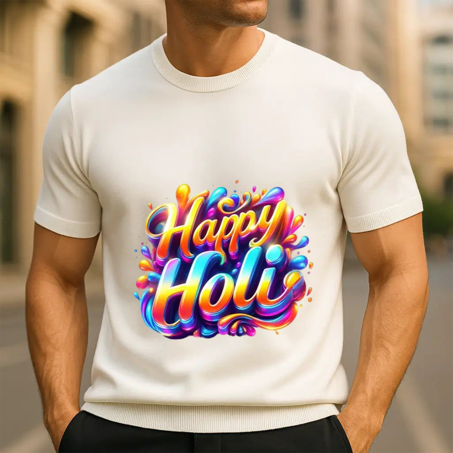 Step into the future of festive fashion with our 3D Glossy “Happy Holi” T-Shirt. The centerpiece of this white tee is a beautifully rendered, bubble-style typography that looks like it’s popping off the fabric. Perfect for those who prefer a clean yet artistic look, this shirt is a versatile addition to your festive wardrobe that pairs perfectly with denim or white shorts.